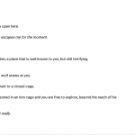 2) Nettement plus embêtant : il était impossible de faire un transcript du jeu (en tout cas en y jouant online, je n’ai pas essayé offline). Twine a le même problème, il me semble. Les transcripts sont pourtant des outils extrêmement utiles pour le bêta-test : on peut faire des commentaires directement dans le jeu, avec tout le contexte visible. J’avais fini par copier-coller des passages du jeu dans un traitement de texte, mais c’est considérablement moins pratique !